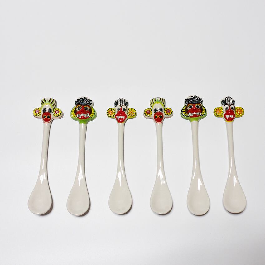 カラフルなミニ仮面が付いたティースプーン6本セットです。